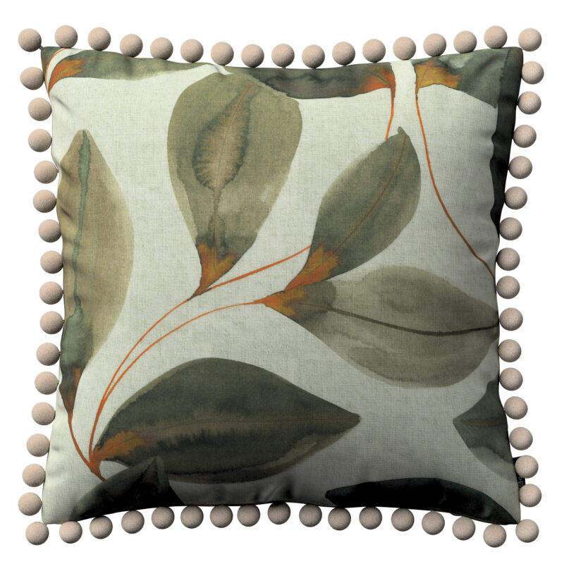 Viera s brmbolcami, pomarančovo – hnedé listy na sivom plátne, 45 x 45 cm, Abigail, 143-17