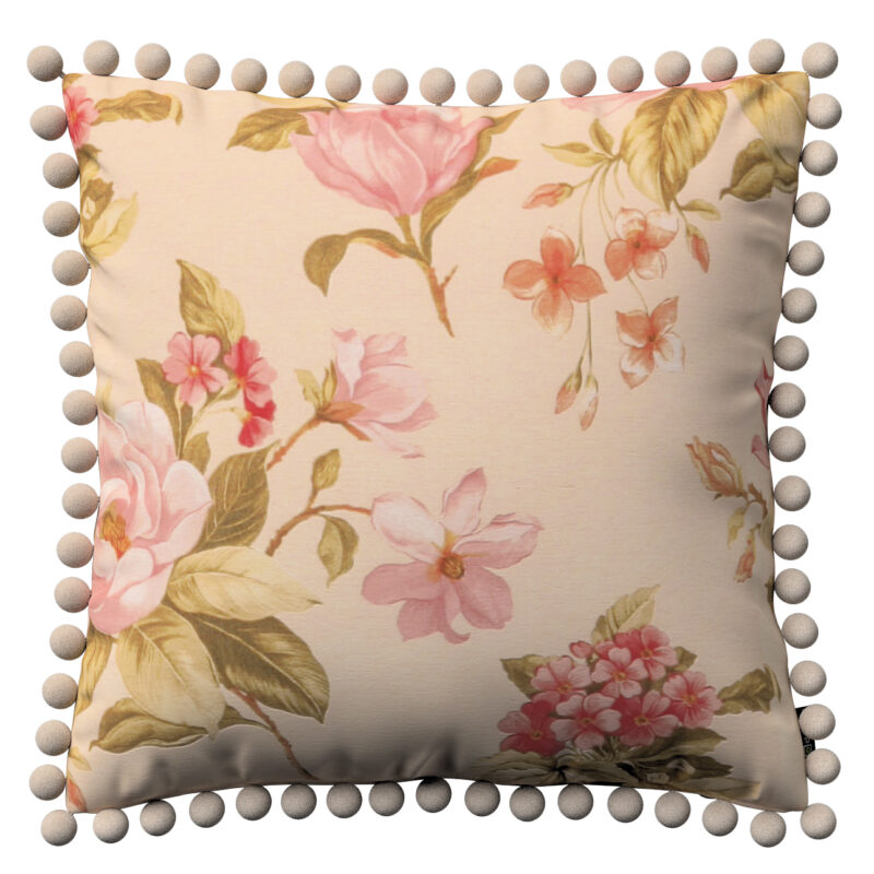 Viera s brmbolcami, výrazný vzor ružovozelené kvety na ľanovom podklade , 45 x 45 cm, Londres, 143-87