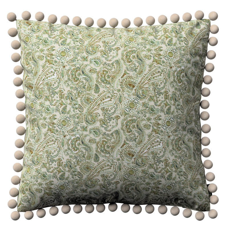 Viera s brmbolcami, zeleno – pomarančové vzory na béžovom podklade, 45 x 45 cm, Flowers, 143-68