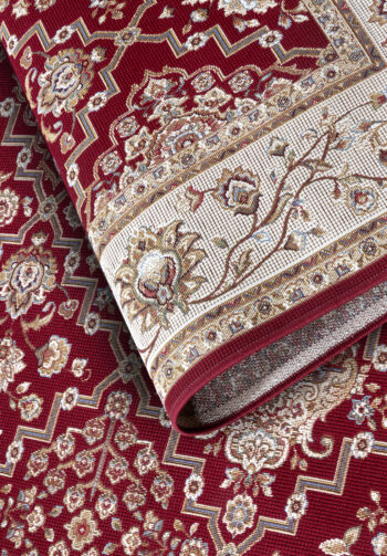 Koberec v kombinácii tmavočervenej a krémovo bielej farby s orientálnym vzorom zaujme svojou elegantnou estetikou. Starostlivé obšitie na dlhších stranách a založenie a lepenie na kratších stranách mu dodávajú upravený vzhľad a dlhú životnosť. Certifikát Oeko-Tex potom zaručuje, že je koberec vyrobený bez použitia škodlivých látok, čo ho robí bezpečným pre celú rodinu.