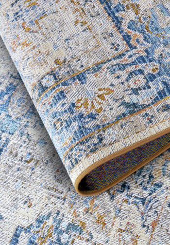 Krémovo biely koberec s modro-žltým orientálnym motívom vo vintage štýle priťahuje pozornosť svojim jedinečným a nostalgickým dizajnom. Jeho vysoko kvalitný materiál zaisťuje odolnosť a jednoduchú údržbu, takže si môžete užívať jeho krásu bez obáv z častého čistenia. Kompatibilita s podlahovým vykurovaním prispieva k jeho praktickému využitiu aj počas chladnejších mesiacov.