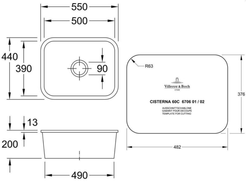 Keramický drez podstavný, bez excentra, farba Cream, šírka 55 cm Keramický drez Villeroy & Boch Cisterna je vyrobený z materiálu CeramicPlus, ktorý zaisťuje výnimočnú tvrdosť, odolnosť proti poškriabaniu alebo inému poškodeniu a tiež odolnosť proti vysokým teplotám. Povrch je odolný voči cudzím látkam a nečistotám, takže sa výborne čistí a potraviny na ňom nezanechávajú žiadne stopy. Materiál CeramicPlus je vyrobený zo 100% prírodných materiálov, je farebne stály a neprijíma chute ani zápachy, takže ja absolútne nezávadný pre potraviny. Materiál: keramika s úpravou CeramicPlus Farba: Cream, lesklá Drez je určený na spodnú montáž pod pracovnú dosku Montáž do pracovnej dosky z prírodného alebo umelého kameňa alebo keramiky Obsahuje odpadovú sadu bez excentra (ručné ovládanie výpuste), sitko na nečistoty a montážnu sadu Sifón nie je súčasťou dodávky (možno doobjednať pod označením 94060000) Rozmery drezu (ŠxHxV): 550 x 440 x 200 mm Rozmery výrezu (ŠxH): 482 x 376 mm, R63 Minimálna šírka skrinky: 600 mm Hmotnosť: 16,74 kg Tento typ drezu sa vyrába vo farbách White alpin, Stone White, Cream, Ivory, Almond, Steam, Fossil, Stone, Graphite, Pure Black, Snow White, Timber, Chromite. Tento drez s odpadovou sadou s excentrom je na dopyt.(GT) Ean: 4047289527886