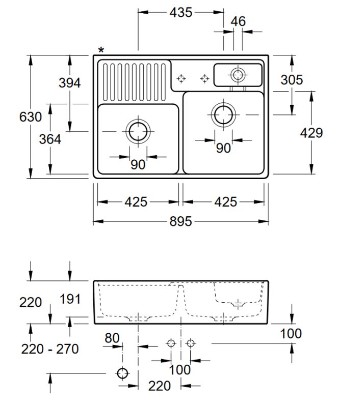 Keramický drez modulový, bez excentra, farba White alpin, šírka 89,5 cm Keramický drez Villeroy & Boch Architectura je vyrobený z materiálu CeramicPlus, ktorý zaisťuje výnimočnú tvrdosť, odolnosť proti poškriabaniu alebo inému poškodeniu a tiež odolnosť proti vysokým teplotám. Povrch je odolný voči cudzím látkam a nečistotám, takže sa výborne čistí a potraviny na ňom nezanechávajú žiadne stopy. Materiál CeramicPlus je vyrobený zo 100% prírodných materiálov, je farebne stály a neprijíma chute ani zápachy, takže ja absolútne nezávadný pre potraviny. Materiál: keramika s úpravou CeramicPlus Farba: Ivory, matná Drez je určený na montáž na spodnú skrinku alebo na nástennú konzolu Obsahuje odpadovú sadu bez excentra (ručné ovládanie výpuste), sitko na nečistoty, sadu pre montáž na skrinku a dierovanú misku V prípade montáže na stenu bez skrinky je nutné objednať montážnu sadu 92084700 Sifón nie je súčasťou dodávky (možno doobjednať pod označením 94060000) Rozmery drezu (ŠxHxV): 895 x 630 x 220 mm Minimálna šírka skrinky: 900 mm Hmotnosť: 44,93 kg Pri objednávke uvádzajte číslo otvoru pre batériu – viď nákres Tento typ drezu sa vyrába vo farbách White alpin, Stone White, Cream, Ivory, Almond, Steam, Fossil, Stone, Graphite, Pure Black, Snow White, Timber, Chromite. Tento drez s odpadovou sadou s excentrom je na dopyt.(GT) Ean: 4051202126506