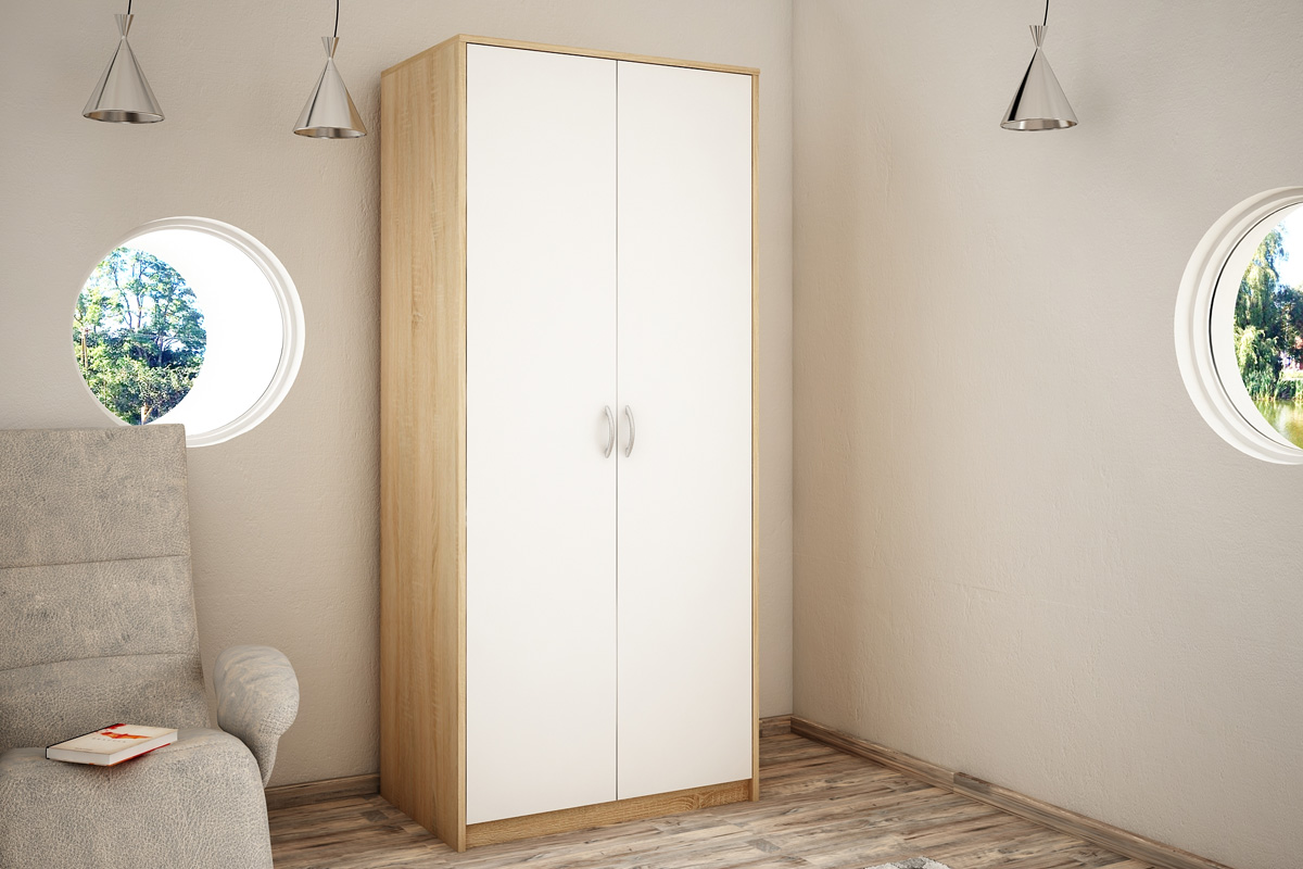 Domovská stránka » Katalóg » VILMA 2D PLUS dvojdverová skriňa s policami, dub sonoma/biela