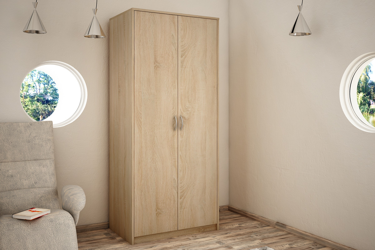 Akciová cena platí na tovar skladom!Klasická 2-dverová skriňa VILMA so 4 vnútornými policami a 1 vešiakovou tyčou, je vyrobená z kvalitnej LTD dosky. Korpus skrine a takisto jej dvierka sú v obľúbenom farebnom prevedení dub sonoma. Úchytky sú z plastu vo farbe alumínium oblého tvaru. Dodávame v demontovanom stave.