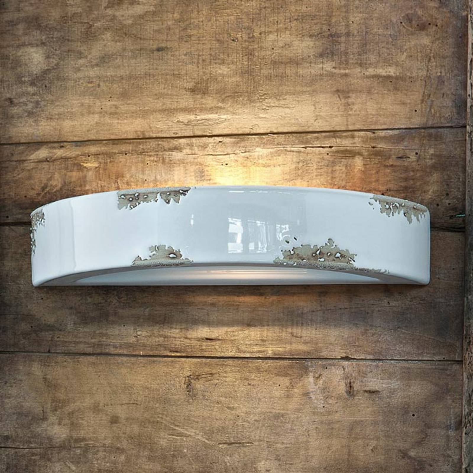 Vintage biely náter na keramickom nástennom svietidle C603 Nie je nástenné svietidlo C603 správne natreté? Nie, je to zámerné. Oblasti, na ktorých zrejme nebola nanesená žiadna farba, boli zámerne vynechané, pretože to mu dodáva určitý použitý vzhľad, ktorý je veľmi v súlade s módnym vintage štýlom. Preto trochu nezvyčajný náter na tomto svietidle nie je chybou, ale zámerne zvoleným trikom, ktorý si od výrobcov vyžaduje zručné remeselné spracovanie. Svietidlá z tejto retro série sa vyrábajú v Taliansku, často ručne. Najmä špeciálne povrchové úpravy a lakovanie si vyžadujú starostlivú ručnú výrobu. Konečný výrobok je vždy jedinečný a bol vyrobený s maximálnou starostlivosťou a dôrazom na detail.