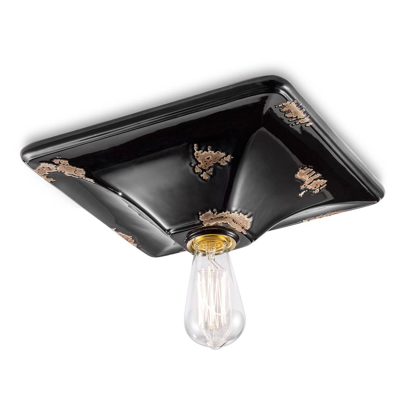 Stropné svietidlo C136 s keramickým telom, ktoré vyzerá ako staré Stropné svietidlo C136 nemá žiadne tienidlo ani difúzor a pozostáva len z keramického tela. To obsahuje držiak lampy, ktorý je ideálne vybaviť rustikálnou lampou s technológiou žiarovky alebo karbónovým vzhľadom, aby sa zachoval štýl celého svietidla. C136 je navrhnuté vo vintage štýle, a preto je zámerne upravené tak, aby vyzeralo staro. Čierna farba na keramickom tele bola upravená tak, že na niektorých miestach vyzerá, akoby už nebola úplne nová. Výrobcovia týchto retro svietidiel vymysleli a zdokonalili túto špeciálnu povrchovú úpravu a sfarbenie. Tradičné remeselné spracovanie a staré talianske vzory a farby tvoria základ modelov tohto výrobcu, ktorý vyrába výlučne v Taliansku.