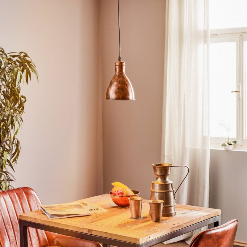 Malé závesné svietidlo Priddy 1 vo vintage štýle s tienidlom medenej farby Kovové diely závesného svietidla Priddy 1 majú starožitný medený vzhľad. Závesné svietidlo vo vintage štýle možno použiť nielen na osvetlenie stolov alebo barov v rôznych priestoroch súkromných domácností, ale aj v oblasti gastronómie. Svietidlo tak krásne doplní interiér zariadený v tomto starodávne pôsobiacom štýle. Ako zdroj svetla možno použiť nielen klasické žiarovky, ale aj energeticky úsporné LED či energeticky úsporné žiarivky.