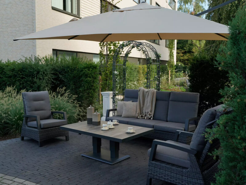 Elegantný slnečník Virgo je praktický doplnok pre exteriér, ktorý vďaka svojmu modernému dizajnu a kvalitným materiálom poskytuje spoľahlivú ochranu pred slnkom, pričom dokonale doplní terasu, záhradu alebo vonkajšie posedenie štýlom aj funkčnosťou.