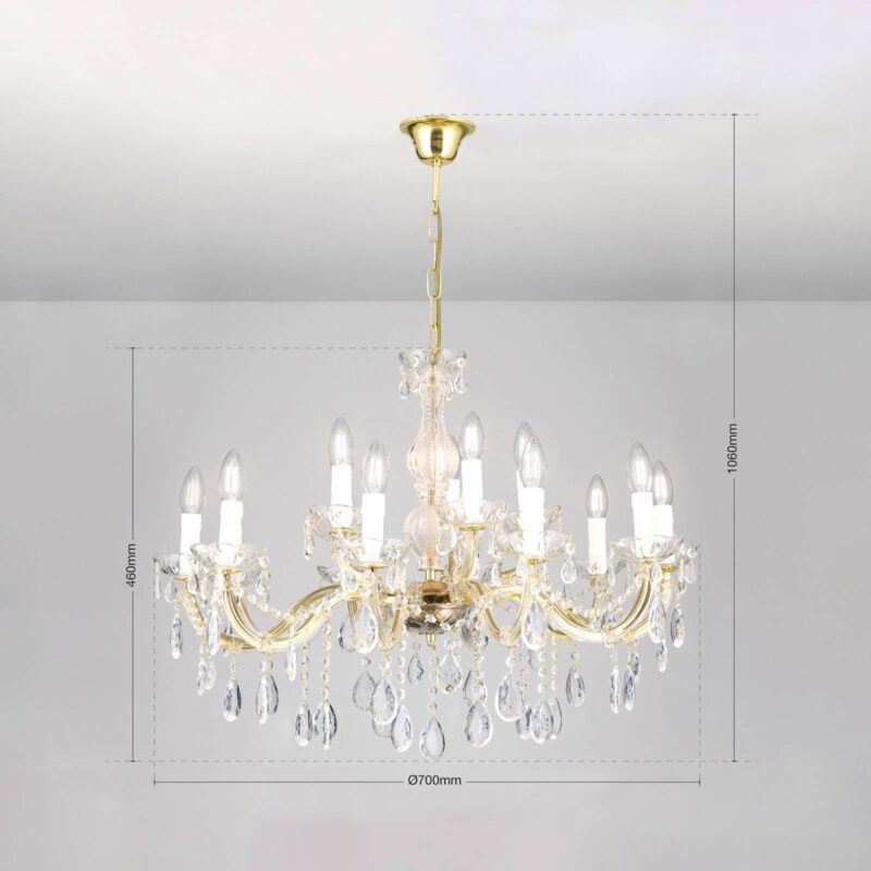 Nádherný luster Marie Claire poskytuje iskrivé svetelné akcentyLister Marie Claire s klasickým a nádherným dizajnom zaplaví obývaciu izbu iskrivým svetlom. Je to najmä vďaka jeho bohatému zaveseniu množstva brúsených kryštálov, ktoré lámu svetlo v nekonečných odrazoch a poskytujú tak očarujúce akcenty. Vďaka svojmu veľkolepému dizajnu je luster zároveň očarujúcim štýlovým prvkom, ktorý sa dokonale hodí do luxusného interiéru.