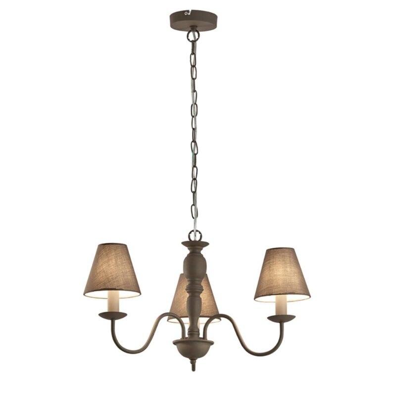 Tri-lampa Fatima visiace lustre sa zakrivenými ramenami Fatima visiace lustre má zakrivený rám, ktorý je pripomínajúce vlnových stôp. Základná farba oceľových prvkov je sivá, rovnako ako tkanina dáždnikov. Je ideálne vhodný ako osvetlenie jedálenského stola, pričom tri látkové tienidlá smerujú nahor a svetlo preto veľmi príjemne zalieva miestnosť, a prispieva tak k väčšiemu pohodliu. Aby ste stôl energeticky úsporne rozsvietili, v žiarovkách E14 je možné okrem žiaroviek do 40 W použiť aj moderné LED žiarovky.