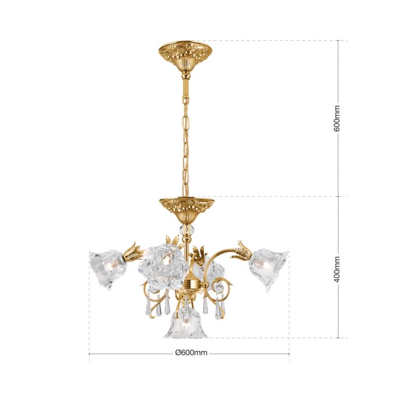 Visiaci luster Kaisa, pozlátané 24-karátmi, 5-pl.