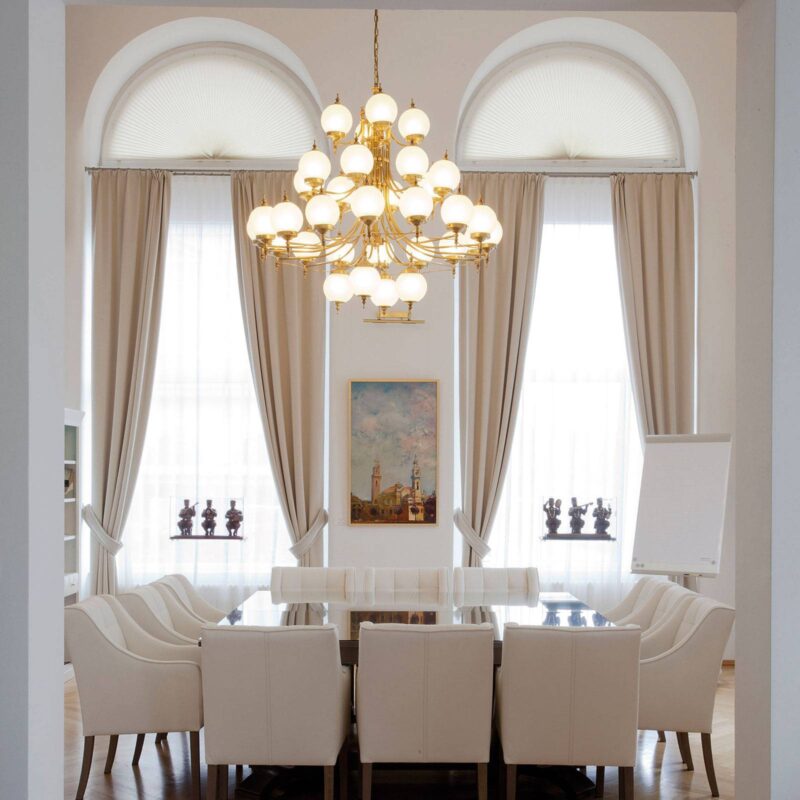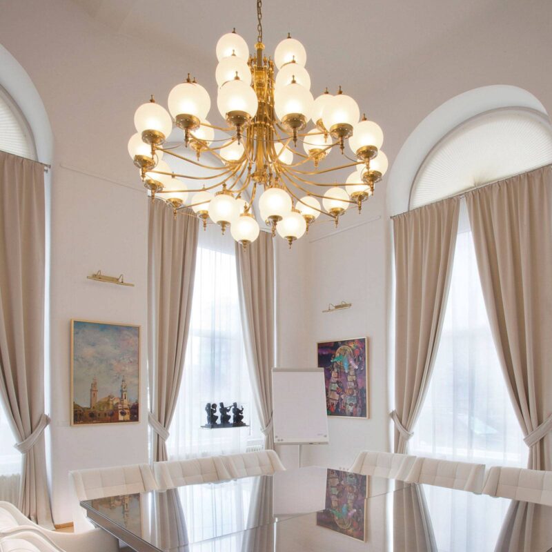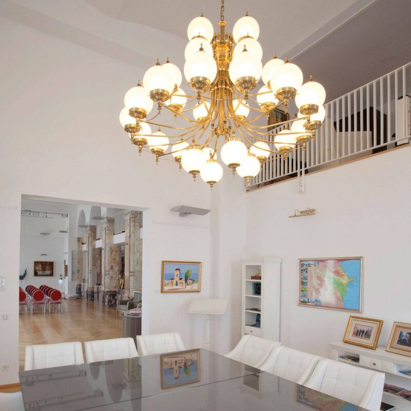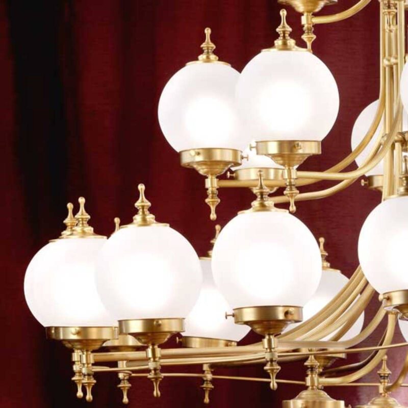 Nádherný luster OBJEKT s veľmi kvalitnou mosadznou konštrukciou Tento secesný luster zo série OBJEKT sa prezentuje vznešenou veľkoleposťou, ktorá sa zvlásť dobre hodí do reprezentatívnych sídel. Zvláštnosťou tohto lustra je popri kvalitnom spracovaní nádherná výzdoba 32 guľovitými tienidlami zo satinovaného skla, ktoré spolu s pekne tvarovanou konštrukciou s bronzovým povrchom vytvára ucelený vzhľad na špičkovej úrovni. Ak hľadáte náročný doplnok a žiarivé osvetlenie, v tomto lustri nájdete vhodný zdroj svetla do obytného priestoru alebo uvítacej haly.