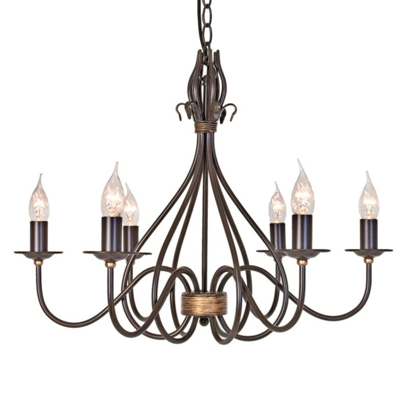 visiace lustre z tepaného železa Windermere so šiestimi ramenami visiace lustre Windermere so šiestimi plameňmi, vyrobený v tradičnom kováčstve a navrhnutý s hrdzavou povrchovou úpravou a ozdobnými zlatými detailmi, je svetelný zdroj, ktorý je vhodný najmä na použitie v obývacích a jedálenských miestnostiach vo vidieckych apartmánoch. visiace lustre vyzerá obzvlášť krásne, ak je vybavený lampami na sviečky v nárazovom vetre. Osvetľovače nie sú súčasťou balenia, ale je možné ich objednať priamo.