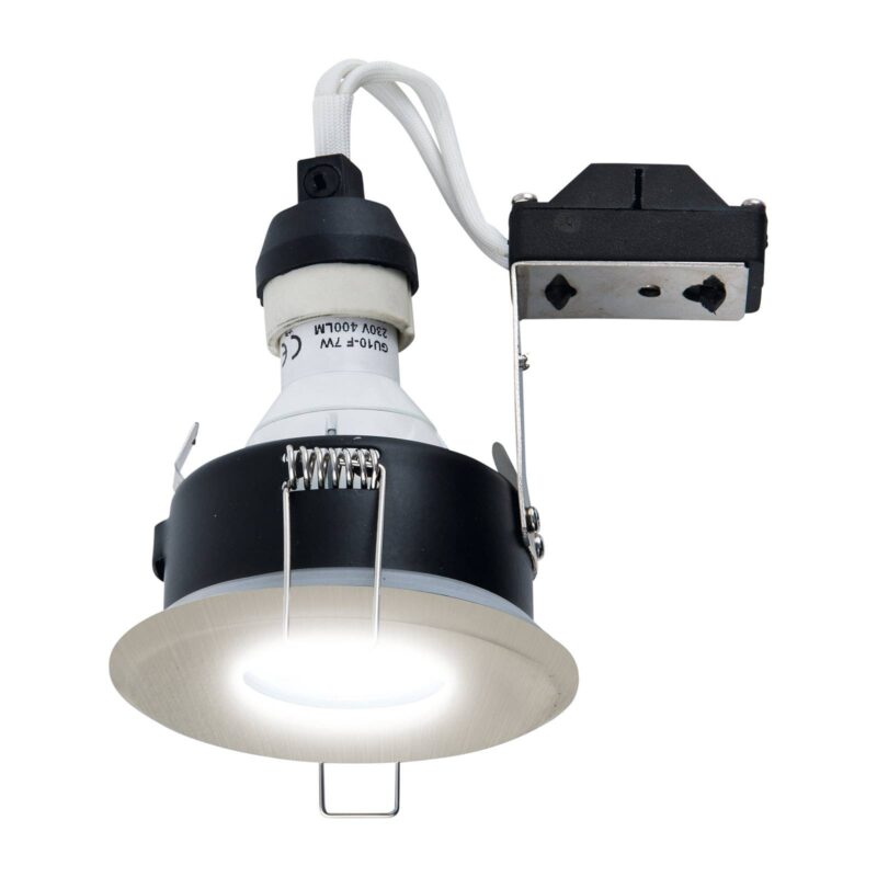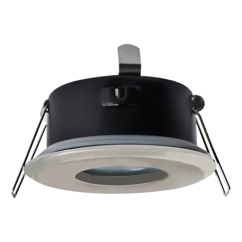 Zapustené bodové svetlo GU10 DL7001 pre vnútorné a vonkajšie použitie, povrch z brúseného železa Kruhové bodové svietidlo DL7001 je všestranné zapustené svietidlo pre vnútorné a vonkajšie použitie v modernom prostredí. Kryt je vyrobený z tlakového liateho hliníka, montážna skrinka s montážnymi pružinami je z oceľového plechu. Svetlo žiarovky GU10, ktoré sa má použiť (pozri príslušenstvo), je bez oslnenia matným skleneným krytom. Pripojovací kábel dlhý 1 m a odľahčenie tahu sú súčasťou dodávky.