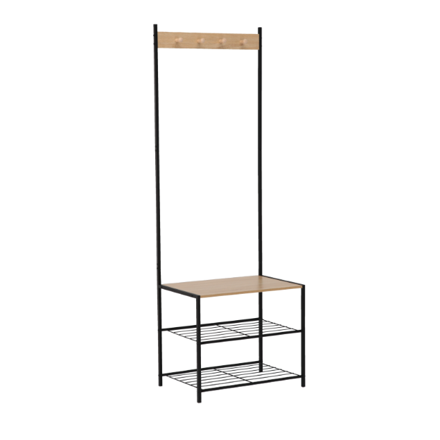 Ponúka dostatok priestoru na zavesenie kabátov, búnd, šatiek, tašiek či doplnkov a jeho spodná polica je skvelá na uloženie topánok alebo úložných boxov. Robustný rám z práškovo lakovaného kovu a odkladacie prvky z MDF zabezpečujú dlhú životnosť aj pri každodennom používaní.