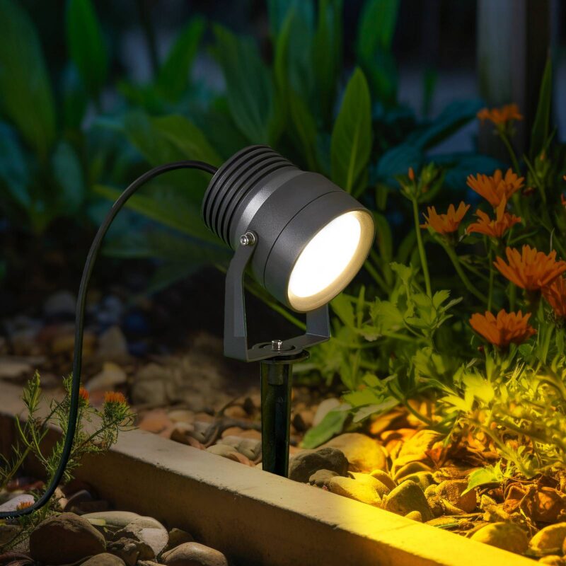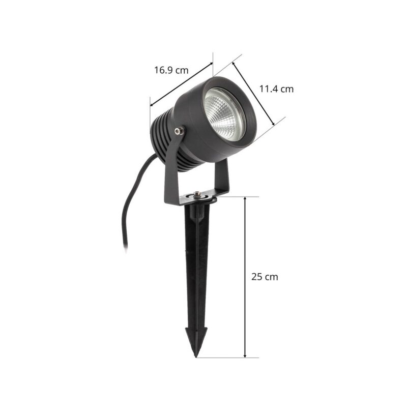 Vonkajší reflektor Irina LED, zemný hrot, zástrčka, sivá, kov