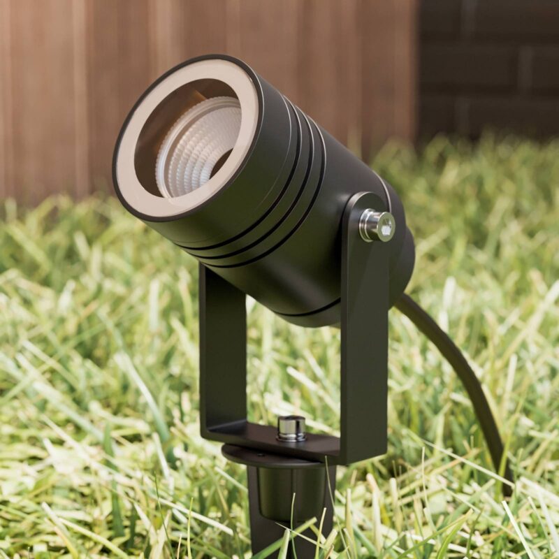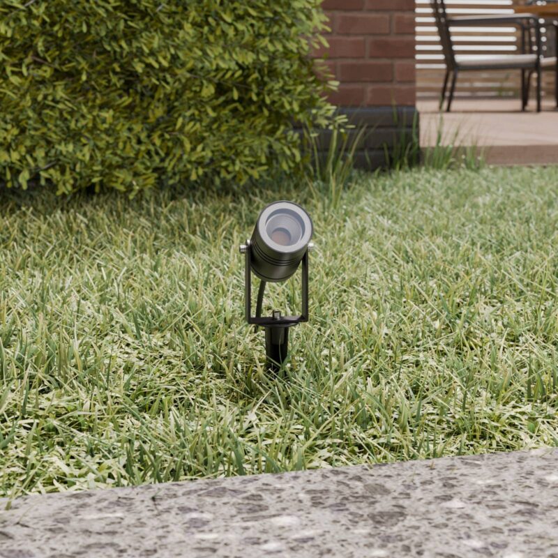 Vonkajší reflektor Lucande Galina, zemný hrot, zástrčka, sivá, 11 cm