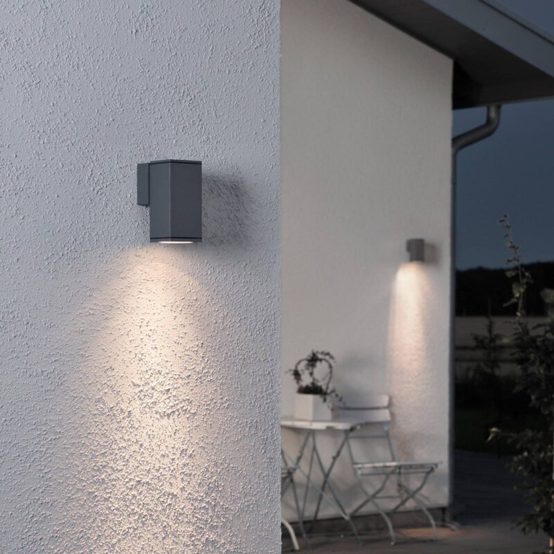 Moderné bodové osvetlenie s vonkajším nástenným svietidlom Monza Monza štýlovo upravuje vonkajšiu stenu tak, aby vyžarovanie svetla smerovalo nadol. Obdĺžnikový rezaný bod je pripevnený k rovnako obdĺžnikovému nástennému držiaku a musí byť osvetlený žiarovkou GU10. Monza je ideálna na osvetlenie prístupových ciest alebo do priestoru vedľa vstupných dverí. Nielen jednotlivo, ale aj v kombinácii s inými svetlami Monza je optimálne osvetlenie vo vonkajšom prostredí. Príslušný zdroj svetla je možné dokúpiť z príslušenstva.