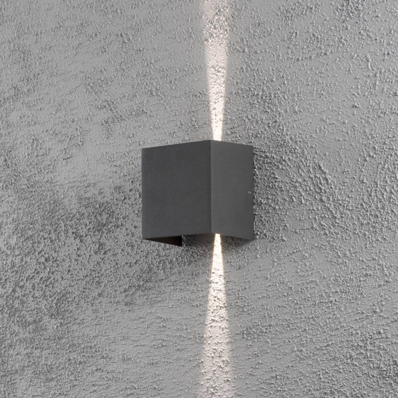 Individuálne nastaviteľné svetelné zásuvky s vonkajším nástenným svietidlom Cremona LED Dizajn LED exteriérového nástenného svetla Cremona je tvorený jasnými líniami a geometrickým, obdĺžnikovým tvarom. Vynikajúca je však vysoko výkonná LED dióda, ktorej svetelné výstupy je možné individuálne nastavovať smerom hore a dole v uhloch od 0 do 90 stupňov. S Cremonou je každá vonkajšia stena štýlovo osvetlená a zasadená do deja. Je vybavený ochranou IP54 a je chránený pred vlhkosťou a nečistotami.