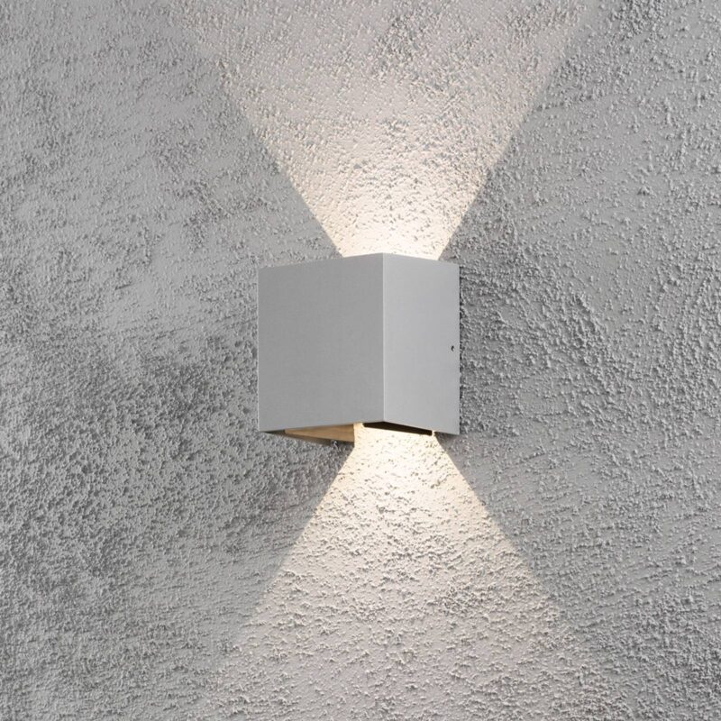 Individuálne nastaviteľné svetelné výstupy s vonkajším nástenným svietidlom Cremona LED Vonkajšie nástenné svietidlo Cremona LED je navrhnuté s jasnými líniami a geometrickým, obdĺžnikovým tvarom. Výnimočným prvkom je však výkonné osvetlenie LED, ktorého svetelné vývody sa dajú individuálne nastaviť smerom nahor a nadol v uhle od 0 do 90 stupňov. Cremona štýlovo osvetľuje a dotvára scénu na každej vonkajšej stene. Je vybavená krytím IP54, vďaka čomu je chránená proti vlhkosti a nečistotám.