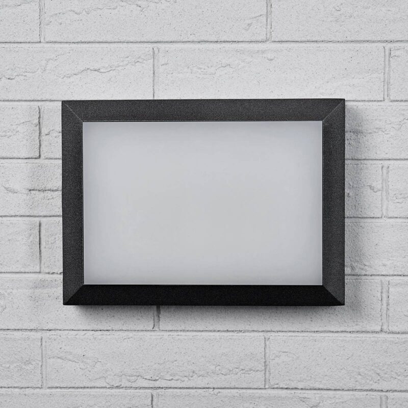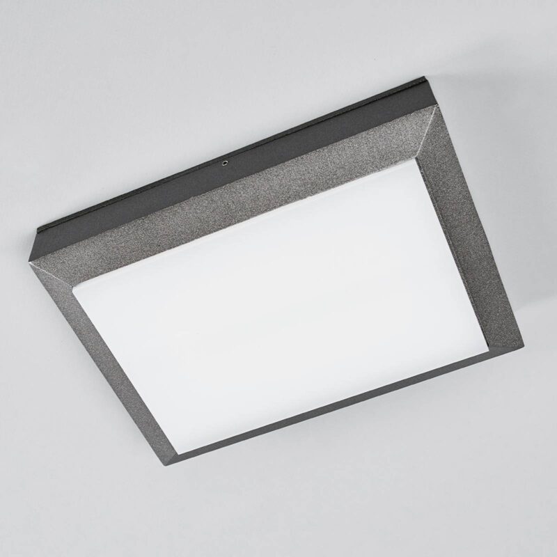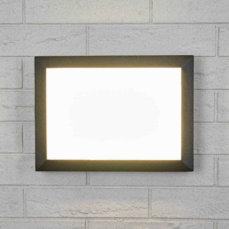 LED vonkajšie nástenné svetlo Kiran s nárazuvzdorným krytom Obdĺžnikové vonkajšie LED nástenné svietidlo Kiran pozostáva z rámu z liateho hliníka lakovaného v antracitovej tienidlo na lampu zo saténového akrylu. Potrebná montážna doska je už súčasťou dodávky. S celkovým príkonom 16 wattov poskytuje nástenné svetlo Kiran jasné osvetlenie na veľkej ploche. Kiran je možné použiť nielen ako vonkajšie nástenné svetlo, ale aj ako stropné svetlo v krytých vonkajších priestoroch, ako je napr B. byť namontovaný pod pergolou.