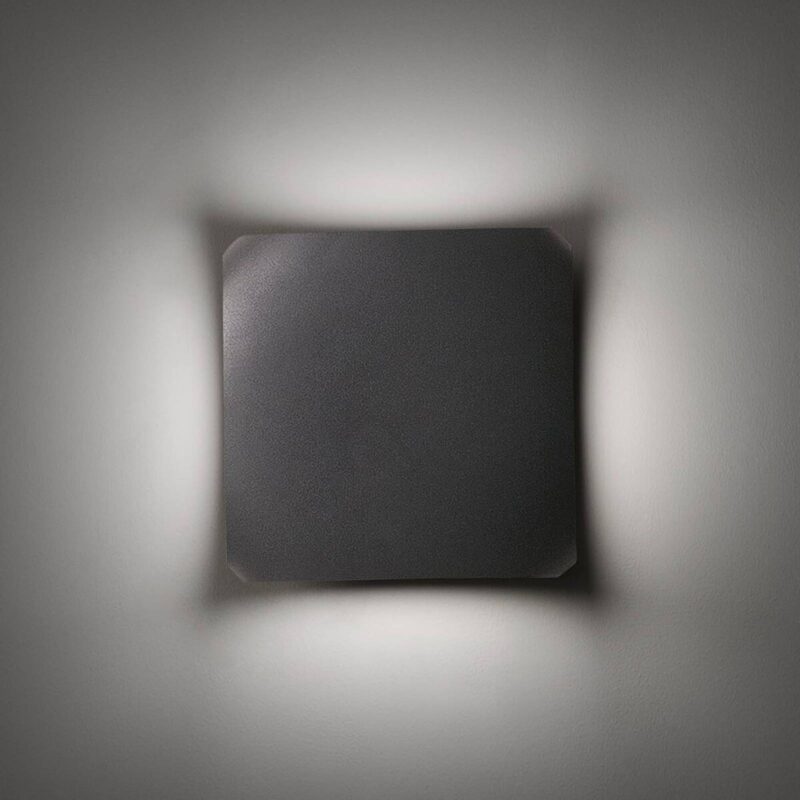 Štvorcové LED vonkajšie nástenné svietidlo Bu-oh! so štvorstrannou emisiou svetla Štvorcové vonkajšie LED nástenné svietidlo Bu-oh! Je na všetkých štyroch stranách. Vybavený svetelnými vývodmi cez zakrivený predný kryt, ktorý bol pripevnený iba k štyrom okrajom rámu, cez ktorý je vyžarované teplé biele svetlo zabudovaných LED diód, a jedinečným spôsobom tak osvetľuje fasádu. Za krytom sa skrýva opálové biele tienidlo na lampu z polykarbonátu. Všade, kde je LED vonkajšie nástenné svietidlo Bu-oh! je namontovaný na fasáde – určite spustí oh-efekt, ktorý vďačí svojmu názvu.