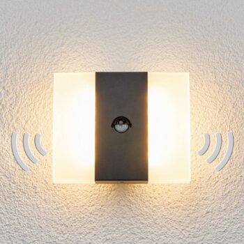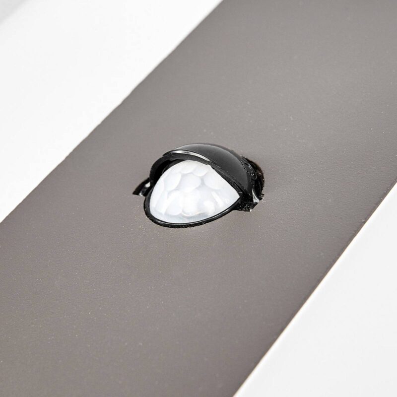 Exteriérové nástenné LED svietidlo Kumi s integrovaným senzorom Pohybový senzor je umiestnený v strede exteriérového nástenného LED svietidla Kumi, priamo na grafitovosivom lakovanom ráme. Pohybový senzor zaisťuje, že svetlo sa zapne len vtedy, keď sa ľudia priblížia k nástennému svietidlu a keď je svetelný lúč skutočne potrebný. Takto sa dá vyhnúť nepríjemnému zapínaniu a vypínaniu a Kumi nesvieti zbytočne bez prítomnosti osôb. Štvorcové teleso svietidla je vyrobené z bieleho plastu a zaručuje príjemné tlmené svetlo. Ak chcete zmeniť nastavenia senzora, môžete vyklopiť kryt senzora nahor a vykonať zmeny. Môžete nielen nastaviť rozsah (2 – 8 m), ale takisto zmeniť trvanie osvetlenia (5 s – 4 min). Pohyby sa zaznamenávajú v uhle 90°.