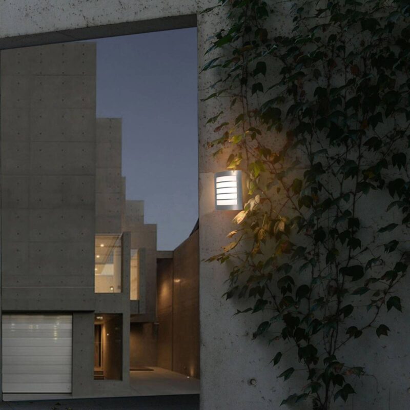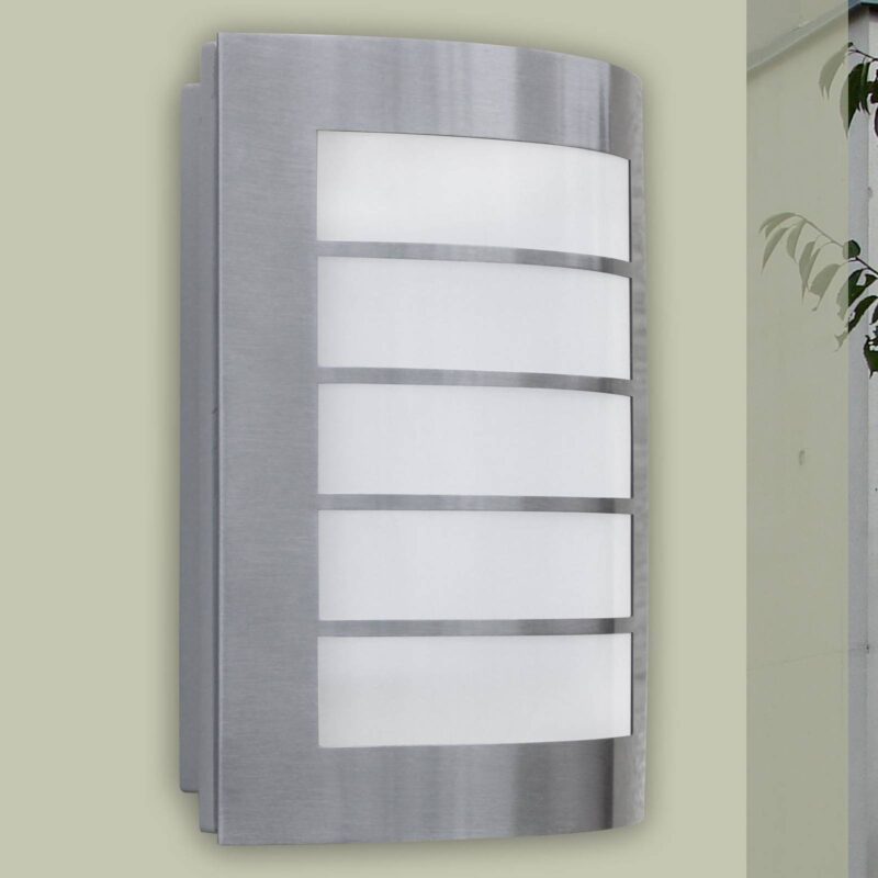 Moderné LED vonkajšie nástenné svetlo Slim s rozdeleným difúzorom Ploché, konvexne zakrivené telo s obdĺžnikovým základným tvarom a povrchovou úpravou z nehrdzavejúcej ocele tvorí Basis vonkajšieho nástenného svetla Slim LED. V kombinácii so saténovým difúzorom, ktorý je rozdelený na päť obdĺžnikových pásov usporiadaných jeden nad druhým a rovnomerne rozdeľuje teplé biele svetlo zabudovaných LED diód, je výsledkom absolútne súčasný celkový obraz.
