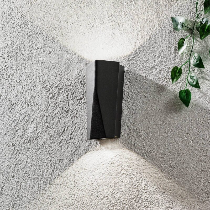 Tay – exteriérová nástenná LED lampa zo skvelým dizajnom Nielen zaujímavý tvar konštrukcie z hliníkovej liatiny s antracitovým povrchom, ale aj veľmi pekné vyžarovanie svetla žiaroviek LED smerom hore a dole pritiahne každý pohľad na túto exteriérovú nástennú LED lampu na fasáde. Žiarovky LED OSRAM vyžarujú teplé biele svetlo v peknom oblúku smerom hore a dole, čím zabezpečia nielen efektívne osvetlenie okolia, ale aj pôsobivý efekt na fasáde. Exteriérová nástenná LED lampa Tay vyzerá veľmi pekne, ak ich použijete viac – napríklad vpravo a vľavo pri vchode alebo okne.
