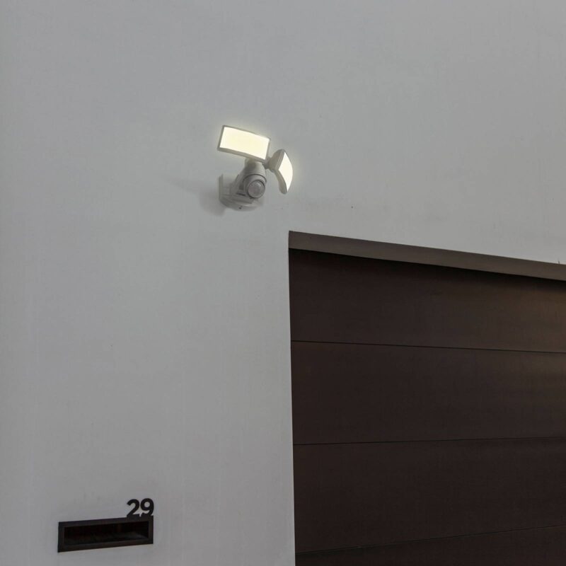 Všestranný, nastaviteľný vonkajší nástenný reflektor Arc LED v bielej farbe so senzorom pohybu Plastový vonkajší nástenný reflektor je majstrom flexibility. Jeho dve konvexne zakrivené svetelné hlavy sa dajú nezávisle od seba otáčať a vychyľovať, aby nasmerovali univerzálne biele svetlo na požadovaný priestor. Pohyblivý je aj pod ním integrovaný snímač pohybu, takže sa nezohľadňujú napríklad aktivity na susednom pozemku – Uhol detekcie: 180° – Dosah: 2 až 12 m – Čas svietenia: 1 min / 3 min / 10 min – Prahová hodnota súmraku je pevne stanovená