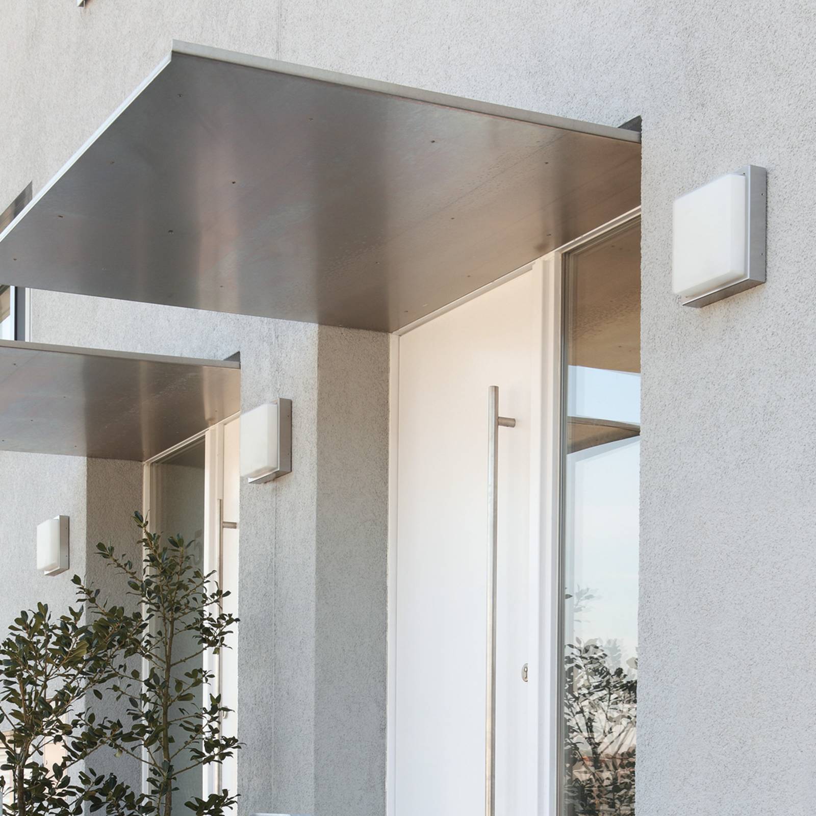 Vonkajšie nástenné svietidlo 046 z nehrdzavejúcej ocele v nadčasovom dizajne Vonkajšie nástenné svietidlo 046 presvedčí integratívnym, univerzálne použiteľným dizajnom. Svietidlo je vyrobené z vysoko kvalitnej nehrdzavejúcej ocele, armatúra je z tlakovo liateho hliníka. Hranatý kryt z opálového skla zaisťuje rovnomerné osvetlenie okolia, takže v okolí domu je zaistená bezpečnosť a orientácia v tme. Vďaka stupňu ochrany krytom IP44 je svietidlo navyše optimálne chránené proti vniknutiu cudzích predmetov a striekajúcej vode zo všetkých strán. Vyrobené v Taliansku