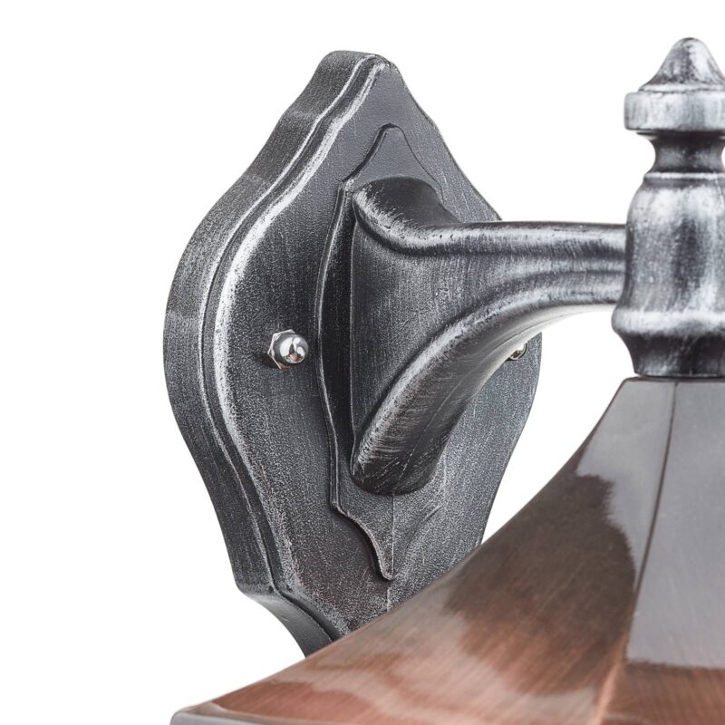Klasické exteriérové nástenné svietidlo Antoine Exteriérové nástenné svietidlo Antoine vás nadchne svojím pekne tvarovaným medeným krytom a čierno-sivou hliníkovou konštrukciou. Zlatohnedý medený plech nielenže pôsobí starožitne, ale tiež dodáva svietidlu výnimočný, zámerne nostalgický šarm. Priehľadné sklo pritom zabezpečuje dobré osvetlenie vstupných priestorov alebo schodov a vytvára tak základný predpoklad dobrej orientácie v noci.