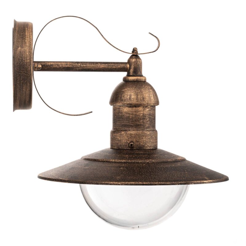 Námorné vonkajšie nástenné svietidlo Linda s elegantným tienidlom a hrdzavým vzhľadom Dizajn vonkajšieho nástenného svetla Linda pripomína žiarovky, aké sa nachádzajú na starých lodiach. Vďaka tomu sa lampa perfektne hodí k vidieckemu štýlu alebo k námornému interiéru. Vďaka IP44 je vhodný do exteriéru, kde osvetľuje vstupy alebo slúži ako dekoratívny zdroj svetla na terase. Elegantné tienidlo dostalo vintage patinu, ktorá mu dodáva rustikálny hrdzavý vzhľad a dodáva lampe niečo isté. Dizajn je zakončený priehľadnou plastovou guľou, ktorá je umiestnená na tienidle. To umožňuje úniku svetla smerom nadol, čo zaisťuje rovnomerné osvetlenie.