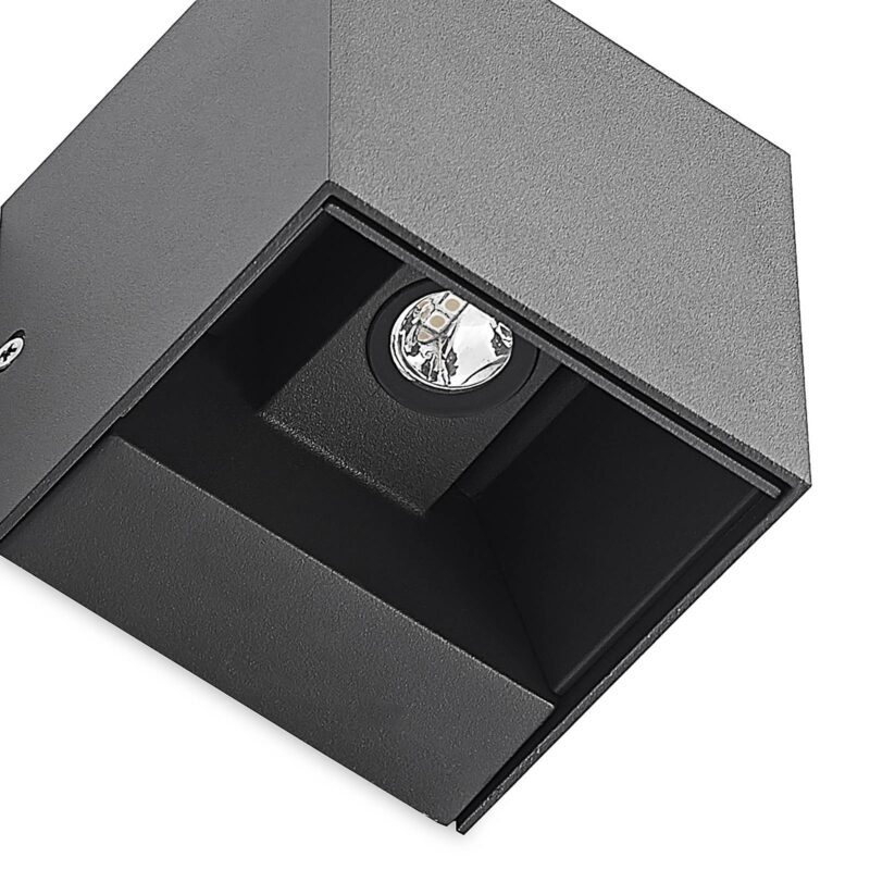 Vonkajšie hranaté nástenné svietidlo Zavir LED z hliníka v tmavosivej farbe Zavir má jednoduchý dizajn, ktorý sa ľahko začlení do architektonického štýlu domu. Vonkajšie nástenné svietidlo LED je vyrobené z hliníka a má tmavosivú farbu, ktorá mu dodáva jednoduchý charakter. Vo vnútri jeho tela svietidla sú trvalo nainštalované LED diódy, ktoré generujú teplé biele osvetlenie a vytvárajú príjemnú atmosféru. Zavir je chránený proti prachu a striekajúcej vode, čo naznačuje stupeň krytia IP54. Diskrétny dizajn vytvára nenápadné akcenty na stenách domu a podľa potreby ho možno kombinovať s inými svietidlami z radu, aby sa vytvoril harmonický celkový dojem.