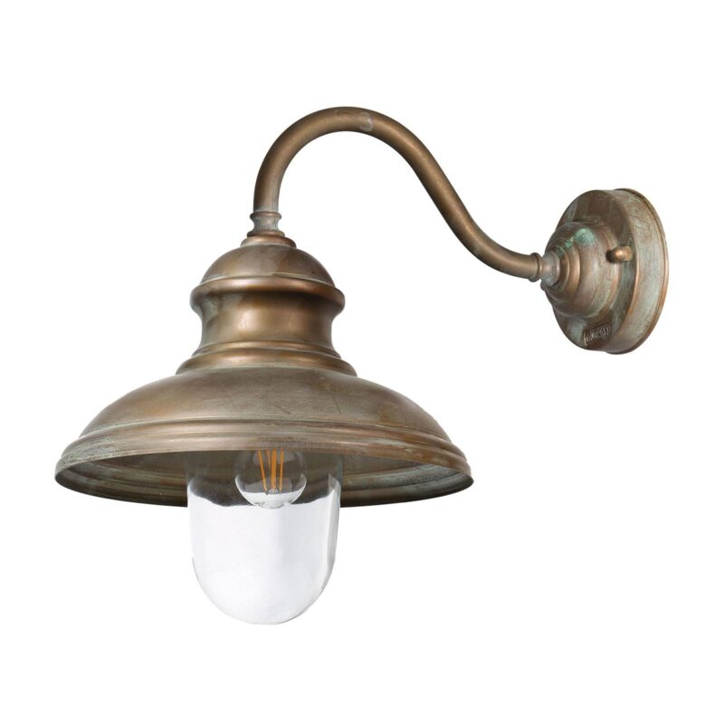 Nástenné svietidlo Little Mill do exteriéru s pôsobivým svetelným efektom Nástenné svietidlo Little Mill šíri starožitný nádych a príjemné ambientné osvetlenie všade tam, kde sa používa v exteriéri: pri vchode do domu, na stene garáže alebo napríklad na fasáde rustikálnej krčmy. Môže sa použiť aj na budove v blízkosti pobrežia. Slanému vzduchu a morskej vode mosadzné nástenné svietidlo odolné voči morskej vode neublíži.