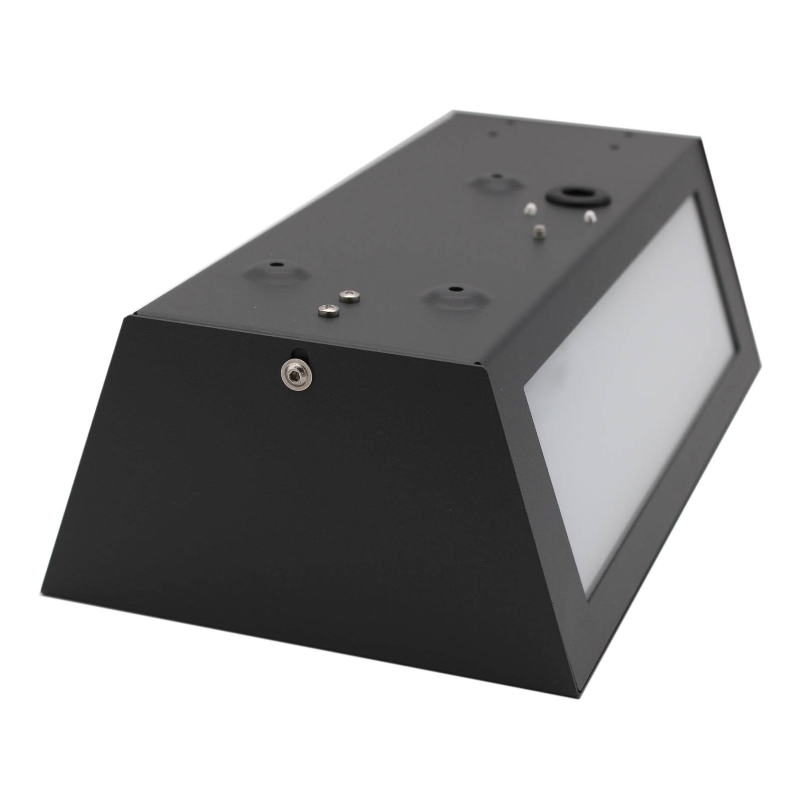 Robustné vonkajšie nástenné svietidlo Long s detektorom pohybuVonkajšie nástenné svietidlo Long je vyrobené z hliníka vo farbe antracit a vďaka svojmu jednoduchému obdĺžnikovému dizajnu je vhodné ako univerzálne vonkajšie svietidlo. Kryt je funkčne navrhnutý s opálovými sklami vloženými na troch stranách. Vďaka tomu je svetlo rozptýlené bez oslnenia. Dodatočný efekt nepriameho osvetlenia sa vytvára vďaka zošikmeným stranám smerom dozadu. Vonkajšie svietidlo je výrobok nemeckej kvality s najmodernejšou technológiou a zabudovaným detektorom pohybu pre najlepšiu bezpečnosť. Technické údaje detektora pohybu: Dosah: max. 8 mSpínací výkon: max. 120 WÚhol detekcie: cca 120°Montáž: 230 V/50 HzČasové nastavenie: 10 s – 8 minNastavenie súmraku: 10 – 2 000 luxov