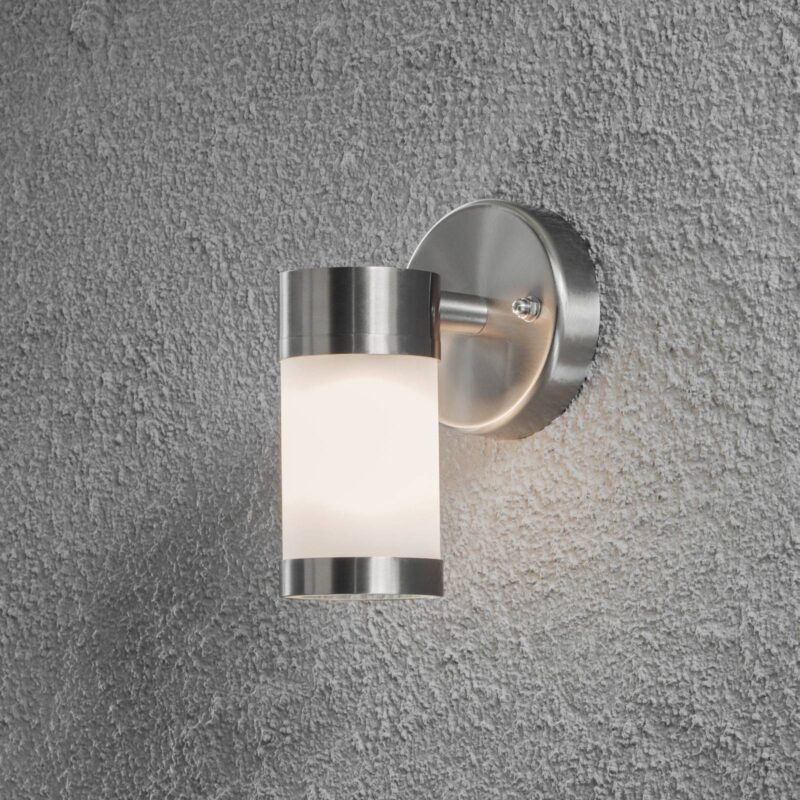 Vonkajšie nástenné svietidlo Modena z nehrdzavejúcej ocele so satinovaným sklom Lampa je vyrobená z nehrdzavejúcej ocele a satinovaného skla. Matné sklo zaisťuje príjemné osvetlenie. S týmto vonkajším nástenným svietidlom môžete nastaviť nádherné akcenty.