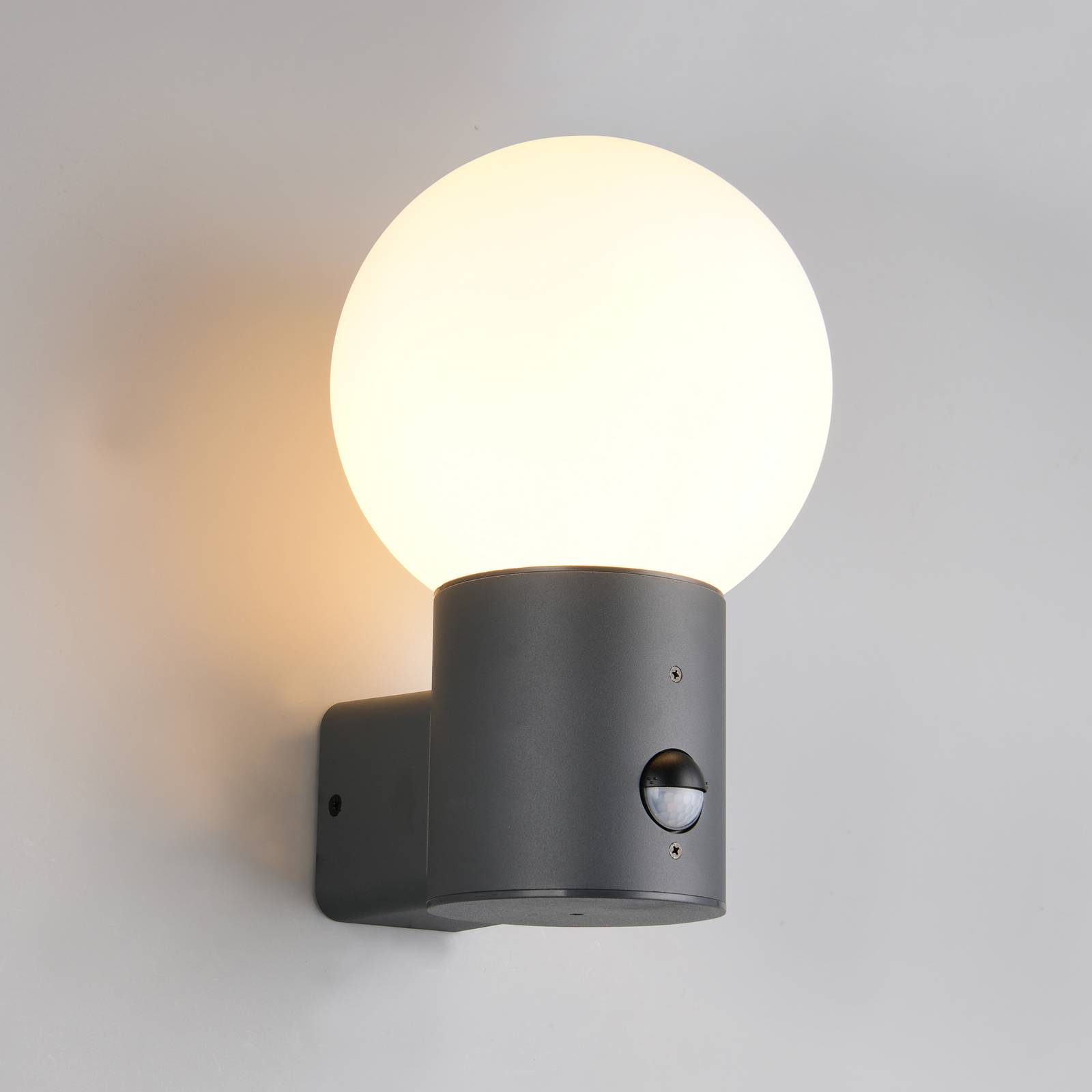 Antracitové vonkajšie nástenné svietidlo Mures s pohybovým senzorom Vonkajšie nástenné svietidlo Mures zaujme svojím moderným dizajnom a vysokokvalitným spracovaním z robustného tlakovo liateho hliníka. Antracitová farba povrchu dodáva svietidlu nadčasovú eleganciu, ktorá harmonicky zapadá do rôznych vonkajších priestorov. Vďaka stupňu ochrany krytom IP44 je lampa optimálne chránená proti striekajúcej vode a je ideálna na použitie vo vonkajších priestoroch. Kombinácia funkčnosti a estetiky robí z vonkajšieho nástenného svietidla Mures spoľahlivý zdroj svetla pre vstupné priestory, terasy alebo fasády. Starostlivý výber materiálov zaisťuje dlhú životnosť a odolnosť, zatiaľ čo moderný dizajn ponúka štýlové riešenie osvetlenia. – s pohybovým senzorom (dosah: max. 8 m, uhol snímania: 120°)
