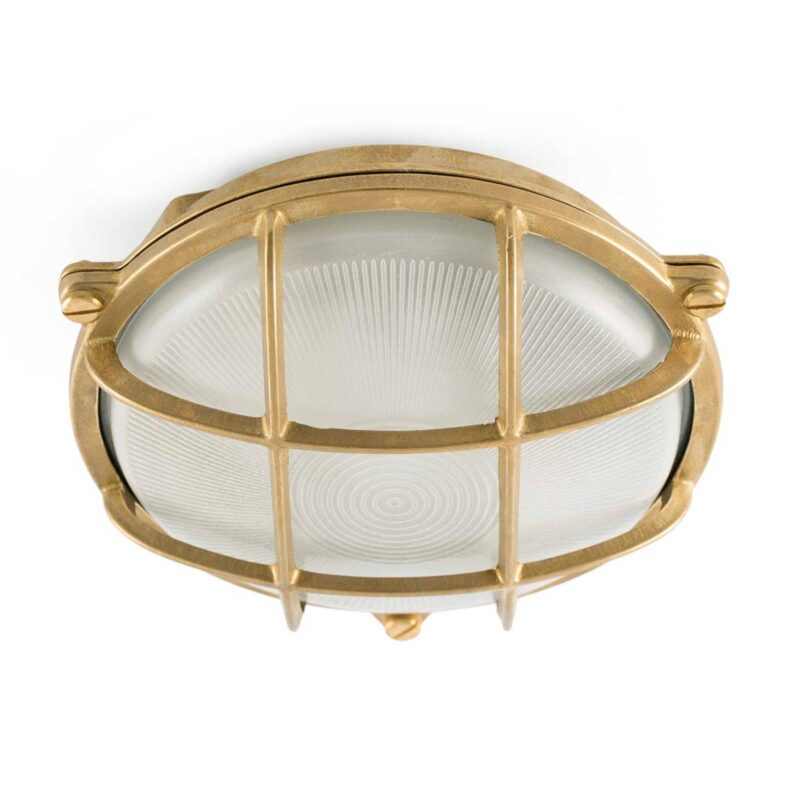Robustný okrúhly mosadzný vodovodný kohútik Noray Morský vodovodný kohútik Noray zaujme svojím kvalitným spracovaním a klasickým dizajnom. Kryt je vyrobený z elegantnej mosadze a vložený disk je z priehľadného skla s drážkami. Vďaka stupňu ochrany krytom IP44 ju možno inštalovať vo vlhkých miestnostiach, ako je napríklad pivnica alebo garáž, alebo môže osvetľovať aj vonkajšie priestory. Možno ho namontovať na strop aj na stenu. Noray sa osvetľuje vhodnou žiarovkou E27 s výkonom do 60 W.