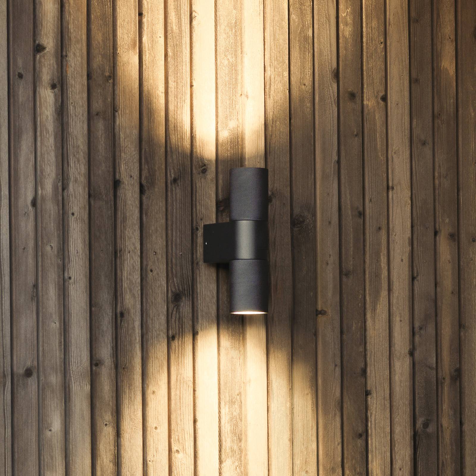 Vonkajšie nástenné svietidlo Temi s dvojitou žiarovkou: elegancia sa snúbi s funkčnosťou Vychutnajte si transformujúcu silu svetla s vonkajším nástenným svietidlom Temi. Toto svietidlo vyrobené z vysokokvalitného hliníka spája eleganciu s funkčnosťou. Jeho moderný dizajn sa dokonale začlení do každej vonkajšej fasády a vďaka smeru svetla nahor/dole ponúka pôsobivý svetelný efekt. Konštrukcia s dvoma svietidlami zabezpečuje optimálne osvetlenie a vytvára estetické akcenty na každej stene. Vďaka stupňu krytia IP54 je vonkajšie nástenné svietidlo Temi optimálne chránené proti prachu a striekajúcej vode, čo z neho robí ideálnu voľbu na vonkajšie použitie. Hoci stmievač nie je súčasťou dodávky, jas možno individuálne nastaviť pomocou externého stmievača a vytvoriť tak požadovanú atmosféru.