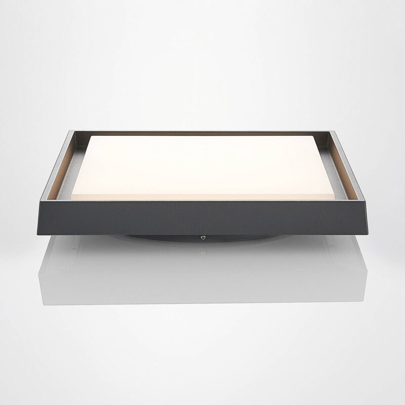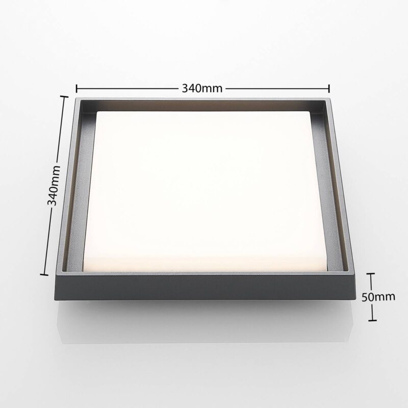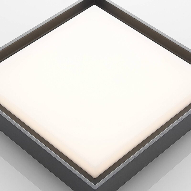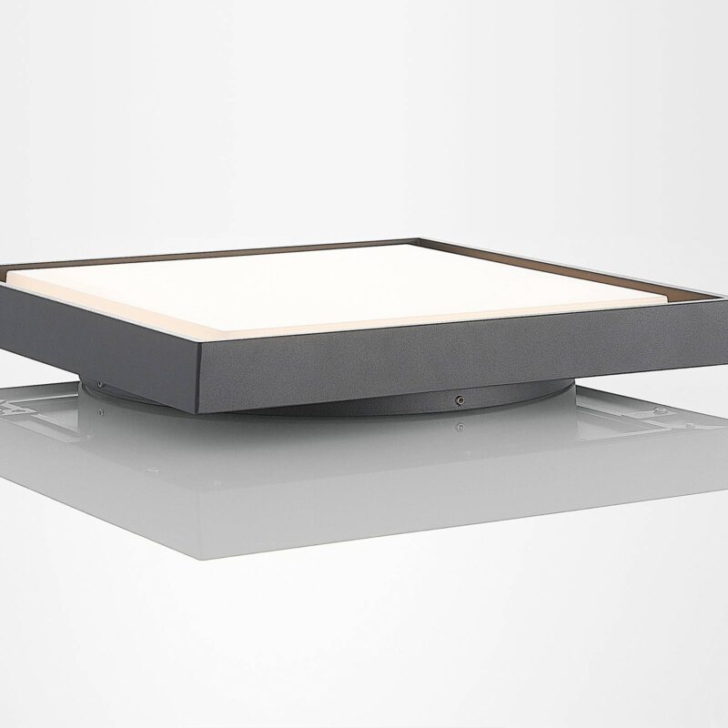 Exteriérové LED stropné svietidlo Birta tmavosivej farby, IP54 Exteriérové LED stropné svietidlo Birta sa stará o dobré osvetlenie na veľkej ploche. Vďaka svojmu jednoduchému dizajnu pôsobí decentne a zdržanlivo a spolieha sa na čistotu geometrických tvarov. V štvorcovom ráme z hliníkového tlakového odliatku je umiestnený rovnako hranatý polykarbonátový difúzor, výsledkom čoho je telo svietidla odolné proti lámaniu, škrabancom a všetkým poveternostným podmienkam. Ploché tienidlo vyžaruje silné svetlo rovnomerne, takže optimálne osvetlí exteriér. Vďaka plochej konštrukcii možno stropné svietidlo umiestniť tak, aby šetrilo miesto, a to najmä v stiesnených priestoroch. Stropné svietidlo má so stupňom IK08 vysokú odolnosť voči nárazom a je vhodné aj na montáž na stenu.