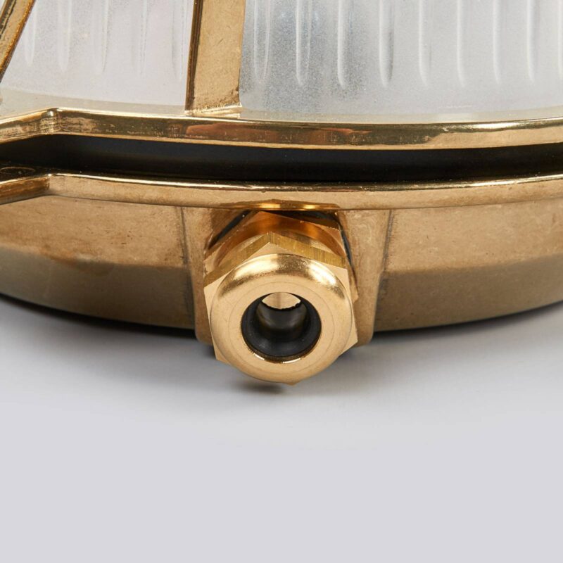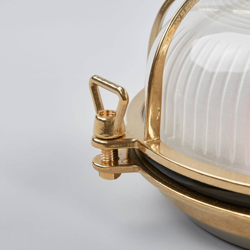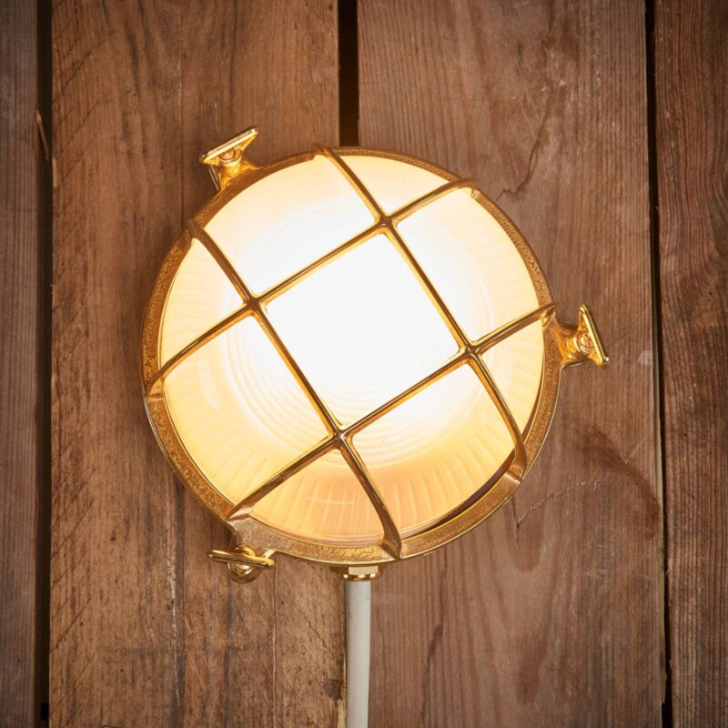 Vonkajšie nástenné svietidlo Tortuga odolné voči slanej vode s ochranou proti korózii Okrúhle vonkajšie nástenné svietidlo je nádherným doplnkom pre každý vonkajší priestor, ale aj pre každý dom. Je navrhnutý v námornom štýle a zaujme mosadzným rámom, ktorý sa dá ľahko pripevniť na stenu alebo strop. Aby bolo svietidlo optimálne vybavené proti vetru a poveternostným vplyvom, má špeciálnu ochranu proti korózii, ktorá chráni najmä pred slanou vodou. To znamená, že svietidlo sa môže dlhodobo používať aj v blízkosti pobrežia.