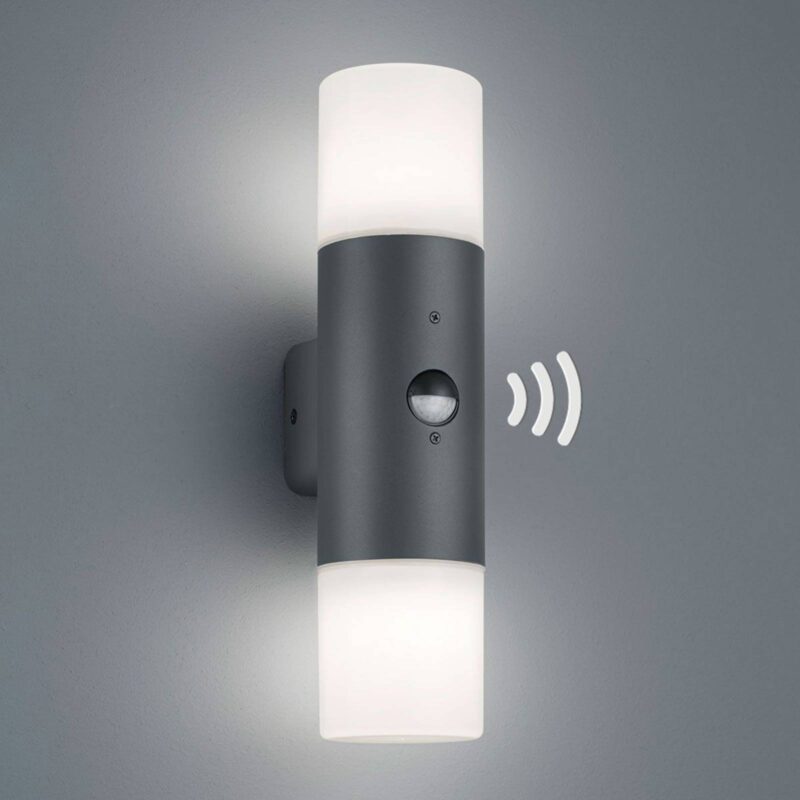Moderná exteriérová nástenná lampa Hoosic s praktickým senzorom Moderná exteriérová nástenná lampa Hoosic z hliníkovej liatiny antracitovej farby a z bieleho plastu ponúka krásny, nadčasový dizajn a jej integrovaný senzor zabezpečuje aj vysokú funkčnosť. Svetlo vyžaruje z dvoch svetelných zdrojov smerom hore a dole, čím je docielené dobré osvetlenie fasády a okolia domu. Praktický pohybový senzor s uhlom snímania 120° a dosahom až 8 m zabezpečí rozsvietenie lampy v tme vždy, keď je to potrebné. Dĺžku svietenia je možné pohodlne nastaviť od desiatich sekúnd až po sedem minút.