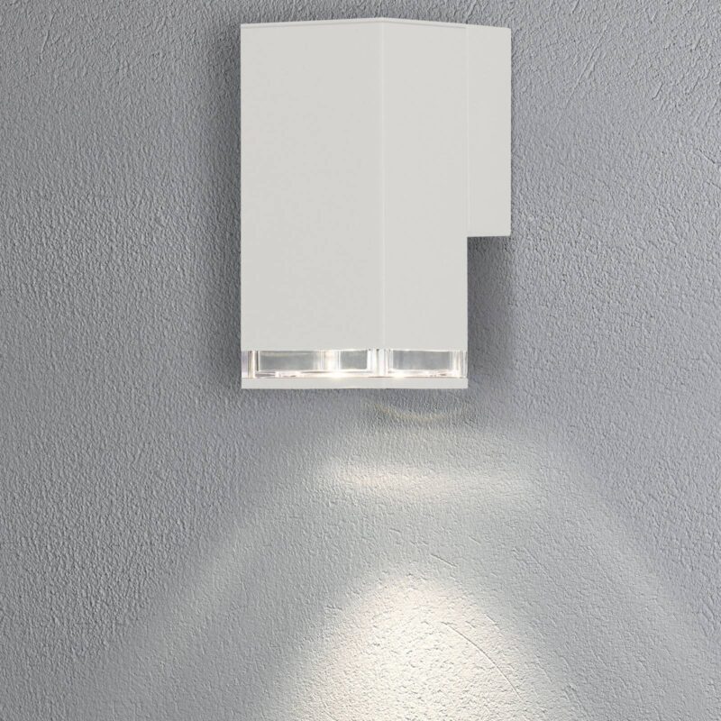 Moderné svietidlo – vonkajšie nástenné svietidlo Pollux Vonkajšie nástenné svietidlo Pollux z lakovaného hliníka vyžaruje svetlo smerom nadol. Je navrhnuté v modernom tvare kocky a na spodnej strane má priehľadný akrylový pás, ktorý dodáva svietidlu určitú eleganciu. Stropné svietidlo Pollux je ideálne pre vstupné priestory domu alebo na osvetlenie domových čísiel.