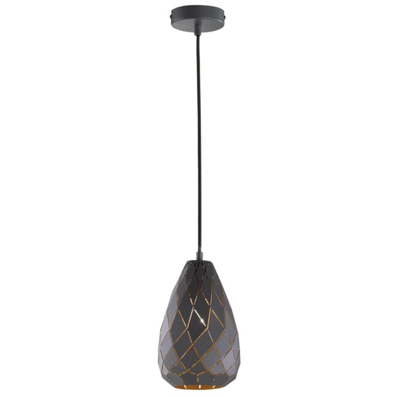 Závesná lampa Onyx so skosenými hranami – trendový prvok Na prvý pohľad jednoduchý dizajn, avšak tento atraktívny model vás presvedčí svojim výnimočným dizajnom. Krásna závesná lampa Onyx s dojmom precízne brúseného drahokamu vytvára luxusný kontrast s elegantným antracitom na vonkajšej strane a noblesnou zlatou farbou zvnútra. Pozlátená vnútorná plocha súčasne slúži ako praktický reflektor, aby sa zvýšil svetelný výkon. Závesná lampa Onyx harmonizuje v prvom rade s esteticky ambicióznymi, luxusnými dizajnovými riešeniami. Je vynikajúca do pôsobivých konceptov osvetlenia, kde je možné ju použiť ako lampu v obývačke alebo jedálni. Aj ako pozývajúce osvetlenie na chodbe, závesná lampa Onyx vyzerá všade dobre. Na zdôraznenie osobitného vzhľadu modelu odporúčame ako doplnok použiť ďalšie lampy s dekoratívnymi sklenenými tienidlami.
