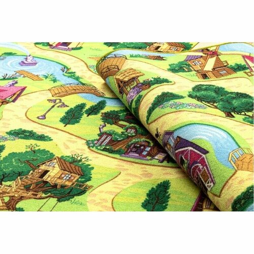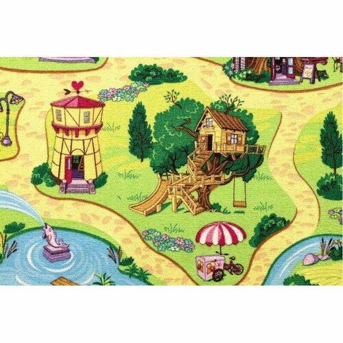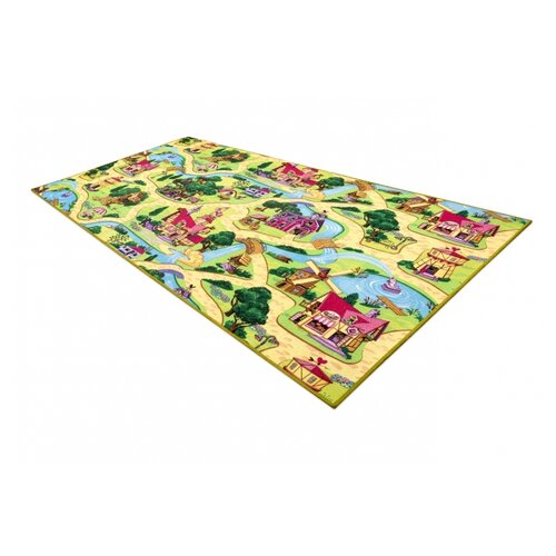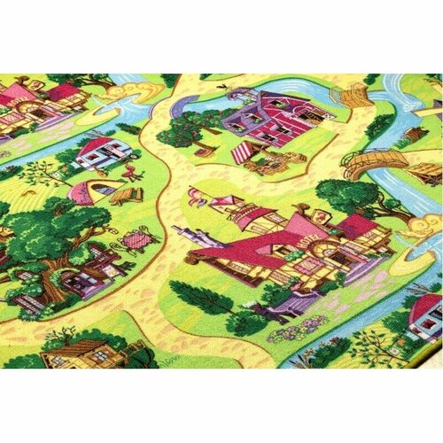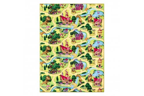 Detský koberec Rozprávková dedinka zabaví vaše deti na dlhé hodiny. Mäkký a pohodlný koberec s množstvom budov je skvelým doplnkom do detskej izby a poslúži ako skvelá hračka aj učebná pomôcka.