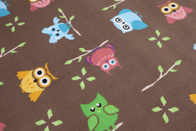 Veľa malých sovičiek na hnedom podklade – takýto motív ponúka detský kusový koberec Sovička Silk 5258. Jedná sa o perfektný koberec do detských izieb, pretože je hebký pri došliapnutí, izoluje chlad a tlmí hluk, môžete ho položiť na podlahové kúrenie a poradí si aj s kolieskovou židov . Koberec typu Silk znesie aj vyššiu záťaž a je možné ho využiť aj do komerčných priestorov.
