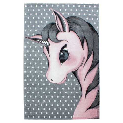 Roztomilý detský koberec s prepracovanými detailmi pre tú najkrajšiu izbičku. Dizajnový motív jednorožca s bodkami urobí z izby vašich detí doslova rozprávkový palác. Navyše vďaka elegantnému prevedenie nezatieni ostatnú výzdobu.Koberec je vyrobený z vysoko kvalitného polypropylénu typu frise, ktorý sa vyznačuje vyššou hustotou vlákien. Je mäkučký a príjemný na dotyk, zároveň však veľmi odolný a ľahko sa udržiava. Zaistí tak maximálne pohodlie vašim deťom pri hraní a dlho bude vyzerať ako nový.