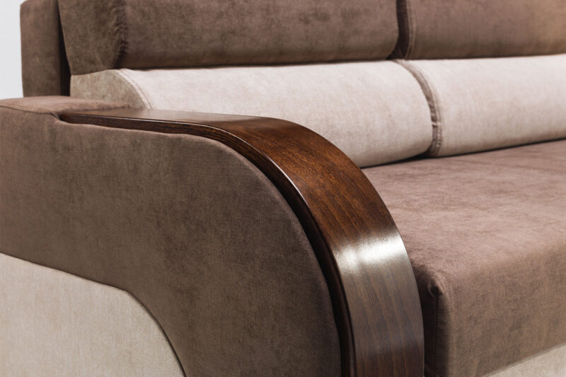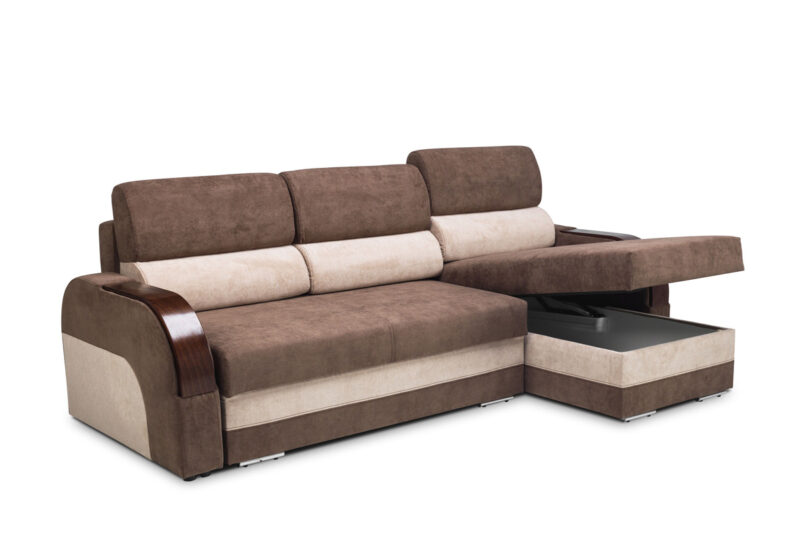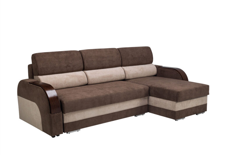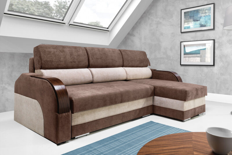 Rozkladacia sedačka KOMO je spojením skvelého moderného dizajnu a elegancie. Vyniká nielen svojím vzhľadom, ale i praktickým spracovaním. Je vhodná do moderných typov interiérov.Sedák je tvorený kvalitnými vlnovcovými pružinami v kombinácii s PUR penou. Zabezpečuje tak maximálny komfort počas sedenia. Na opierkach sú estetické drevené dekorácie. Je čalúnená látkou ST732 a ST731.Sedačka disponuje praktickým úložným priestorom na vašu posteľnú bielizeň a podobne. Po rozložení vám poskytne spaciu plochu o rozmere: 198 x 144 cm. Je vhodná na príležitostné spanie.Rozmery rohovej sedačky (š/d/v): 230 x 141 x 90 cm.Sedačka je je v univerzálna – je možné si ju poskladať v ľavom aj pravom prevedení rohu.